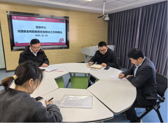 为深入落实学院安全工作会议精神,信息中心于11月19日在成都校区厚德楼423召开了2025年第十次工作例会暨校园安全风险隐患排查整治工作部署会。